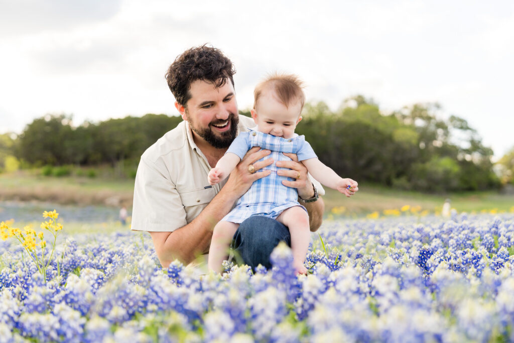 I photograph full family sessions during bluebonnet season rather than mini sessions. That allows families to slow down, explore the field, and create natural moments together instead of feeling rushed.